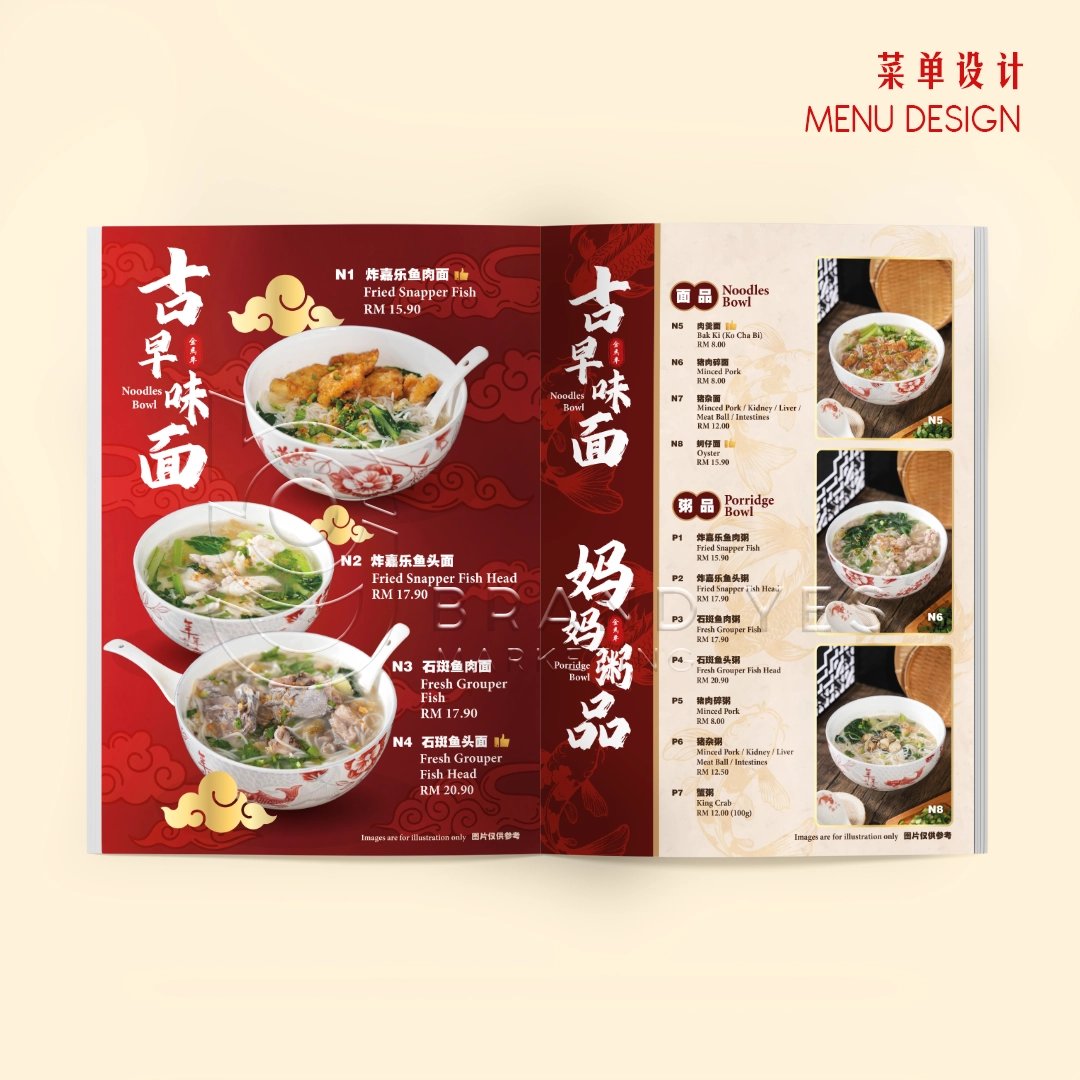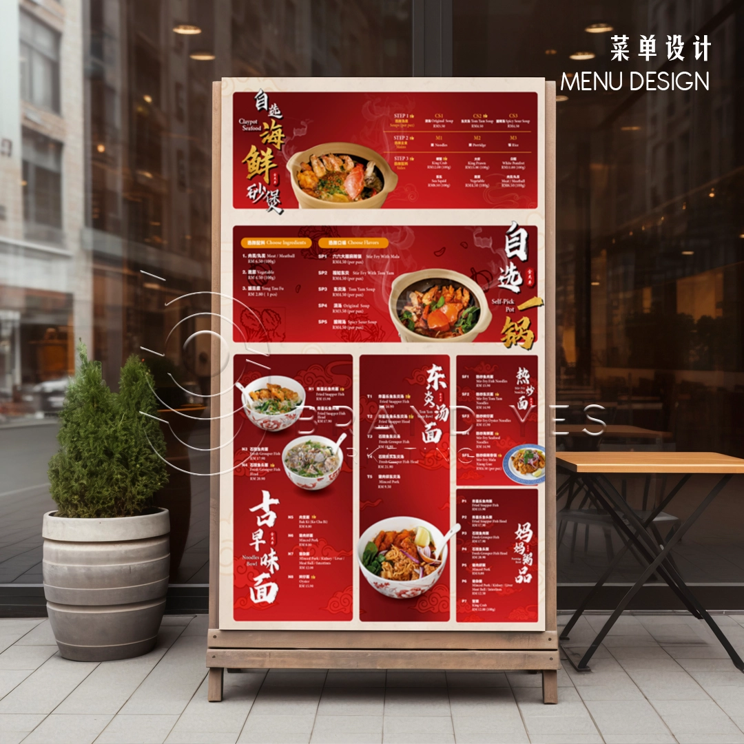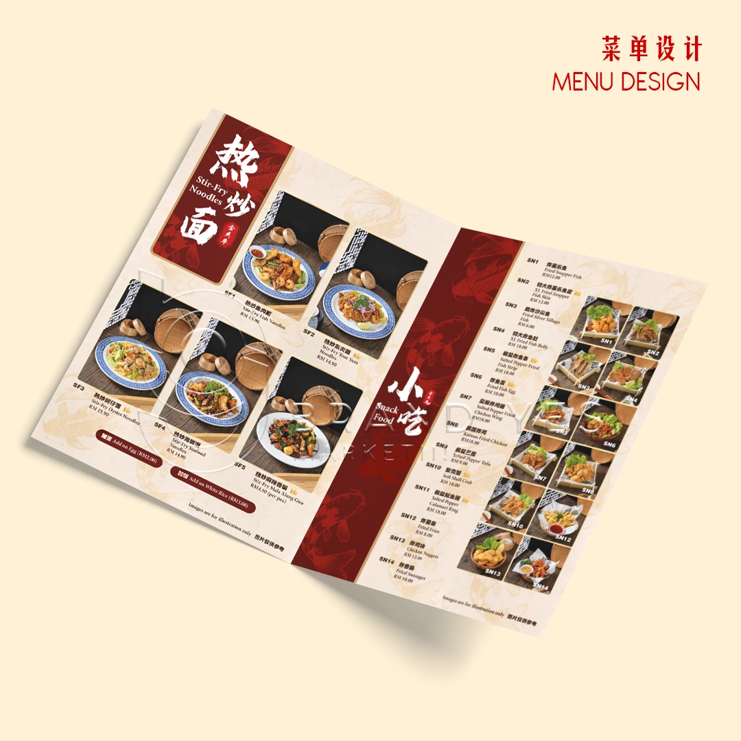 We created a simple, clean menu layout that reflects the authenticity of traditional Chinese food stalls — with clear pricing, easy-to-read sections, and food photos that showcase the texture and richness of each dish.