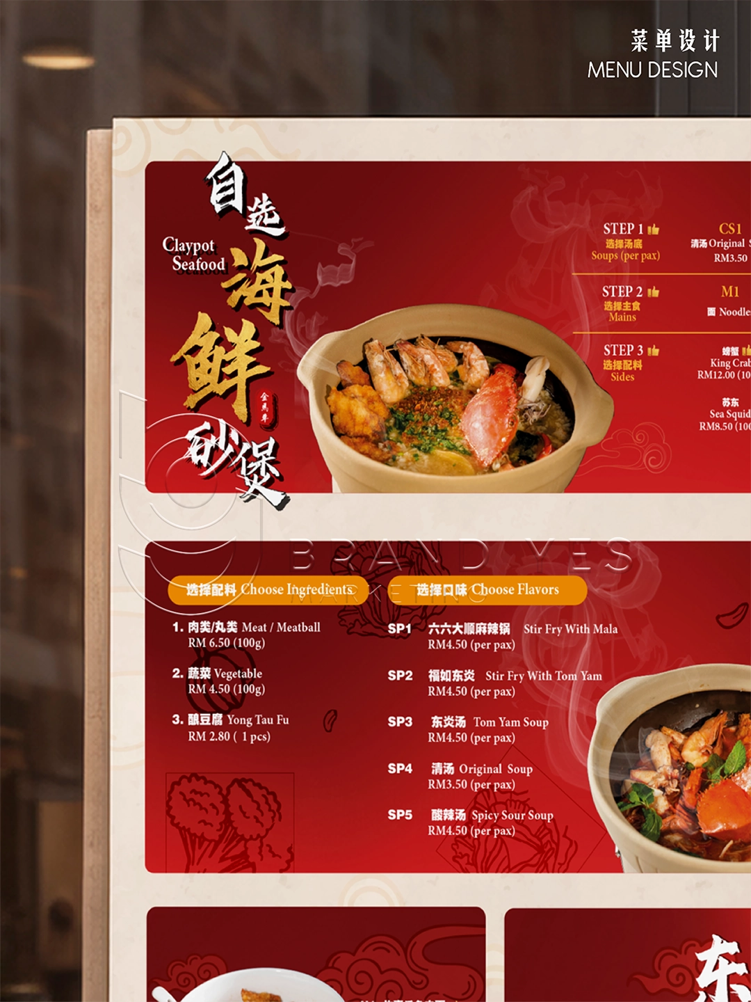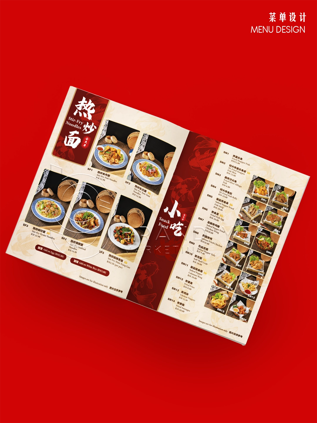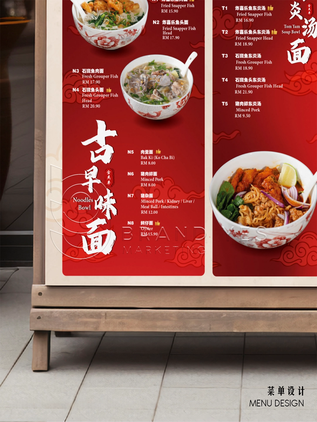 We created a simple, clean menu layout that reflects the authenticity of traditional Chinese food stalls — with clear pricing, easy-to-read sections, and food photos that showcase the texture and richness of each dish.